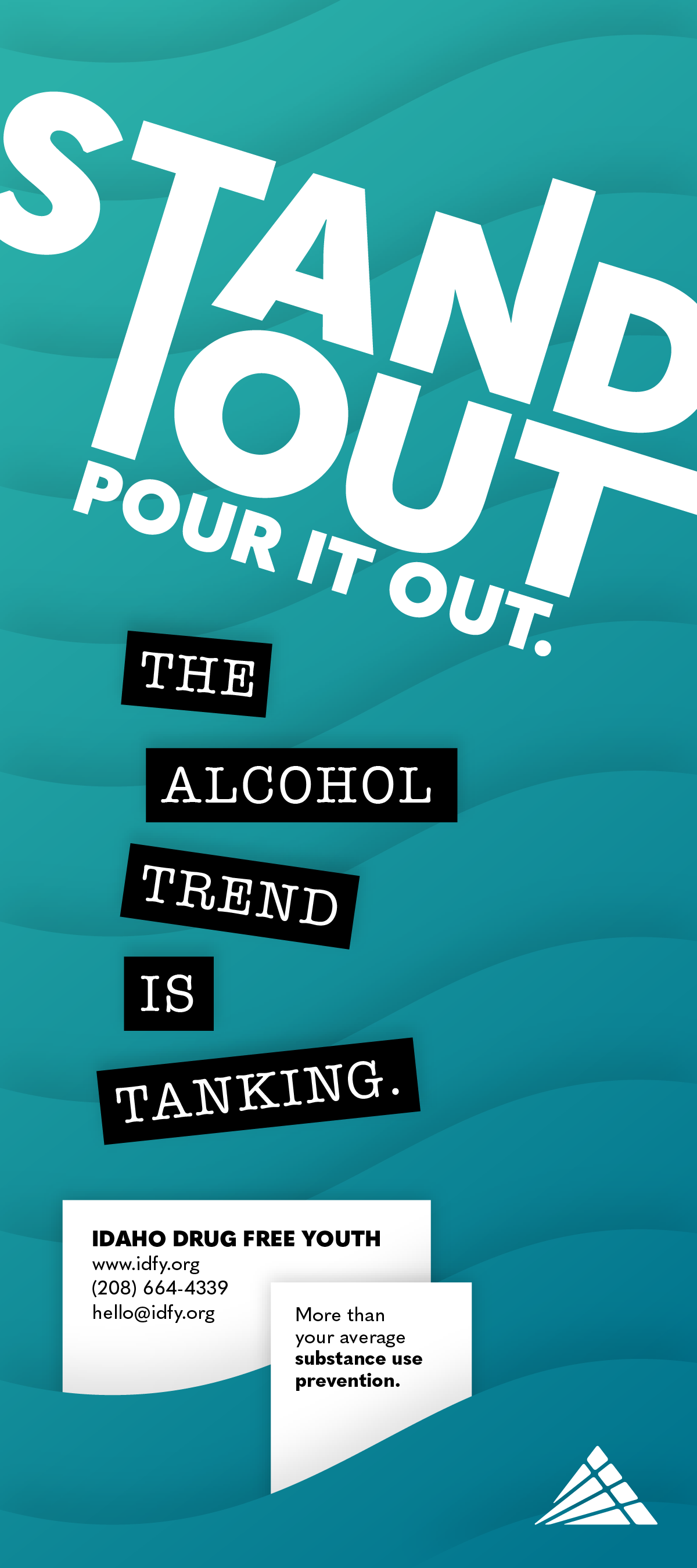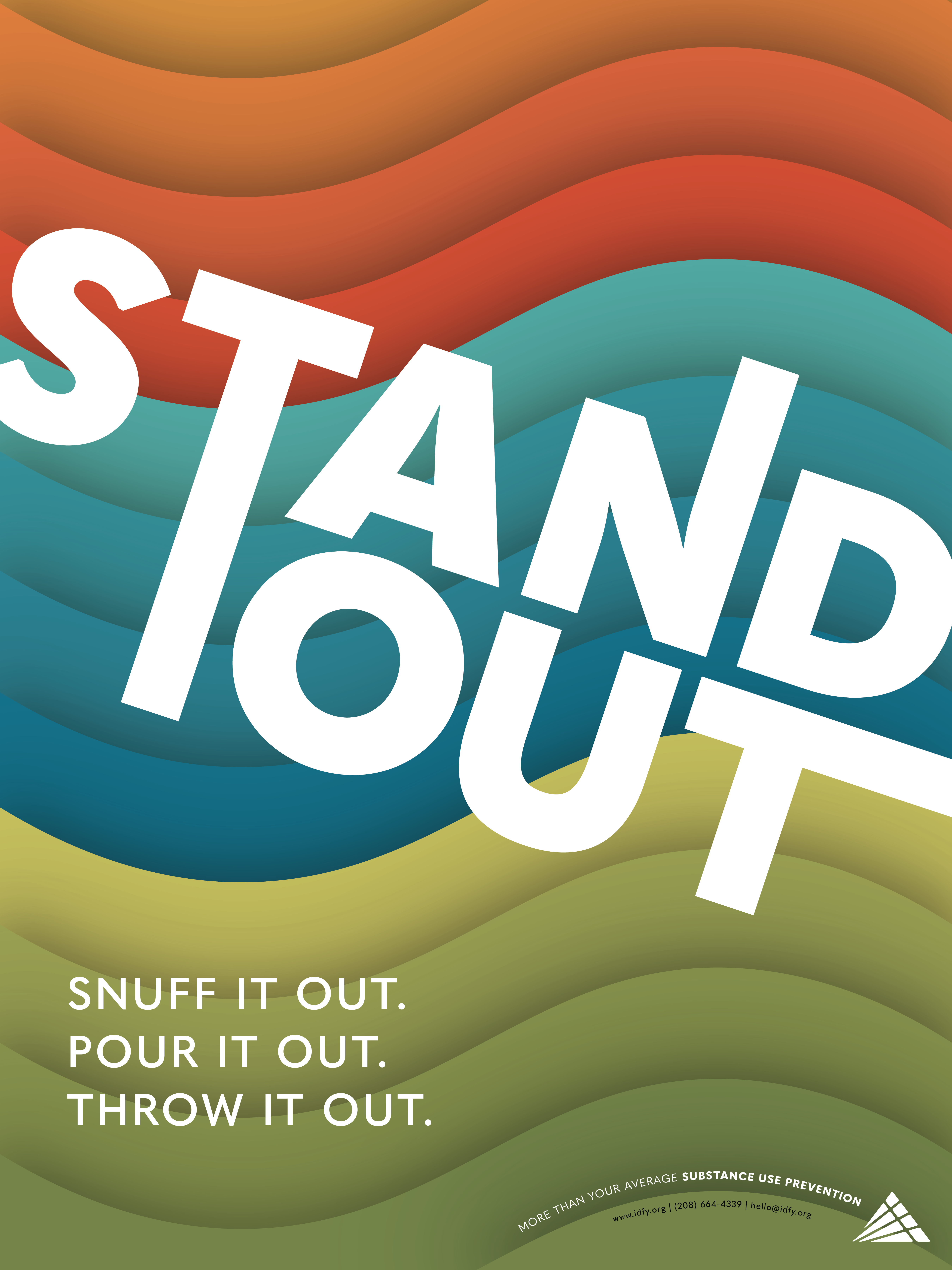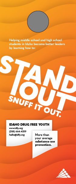 Seasonal academic campaigns (fall, winter, spring) that help teens to better understand substances and the dangers of using. Each phase of the Stand Out campaign includes 10 educational flyers/posters, bookmarks, stickers, cards, and pop-up displays.