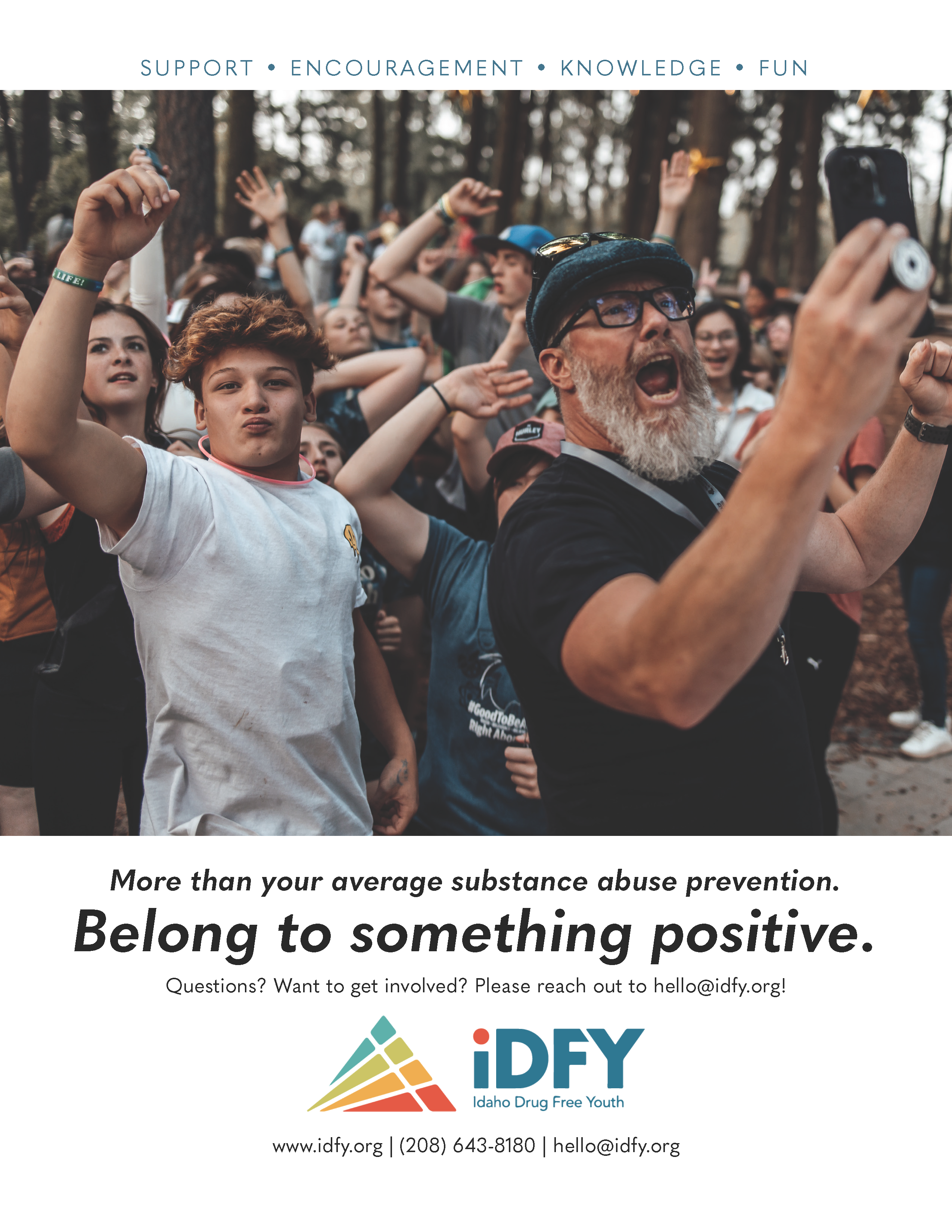 Idaho Drug Free Youth is a 501c nonprofit organization helping teens live “happy, healthy lives” by offering them alternative activities to drug and substance use. Their chapter program stretches across the state, and their program has touched the lives of 75,000+ students.